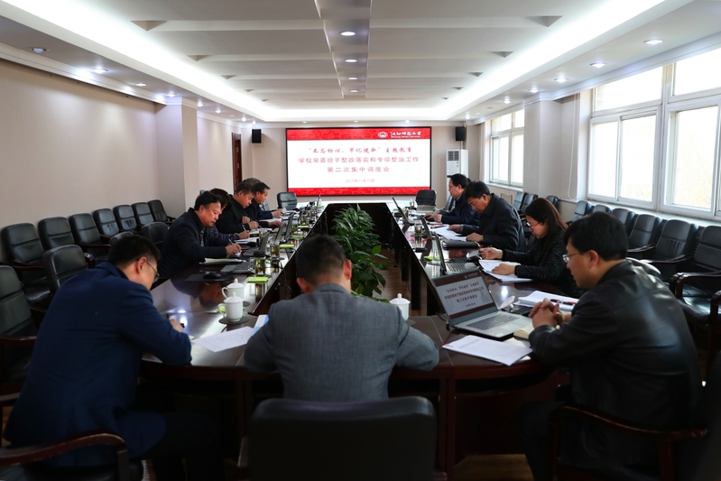 11月12日下午,学校党委在校部303会议室召开“不忘初心、牢记使命”主题教育整改落实和专项整治第二次集中调度会,学校党委班子成员贾玉明、郝德永、钱英伟、刘娇、韩国海、许金龙、杨杰、刘铸、刘天华、卢全参加会议。会议由党委书记贾玉明主持。