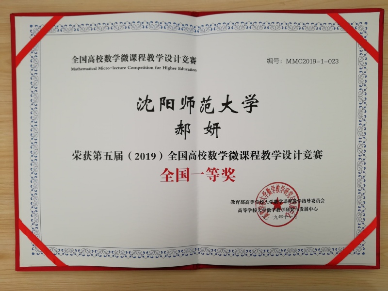 在刚刚结束的第五届全国高校数学微课程教学设计竞赛颁奖仪式上,必赢官网数学与系统科学学院的郝妍、黄影两位老师分别荣获全国一等奖。