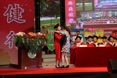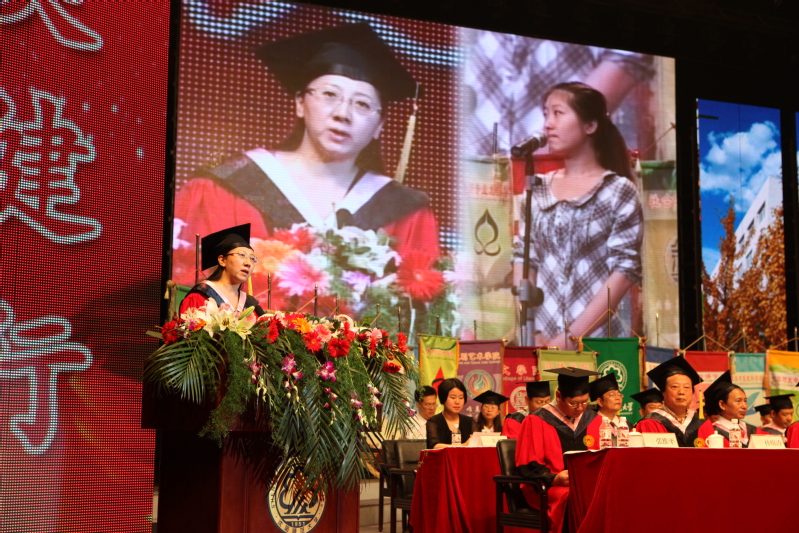 刘洋与学前与初等教育学院但菲院长在2011届毕业典礼上深情对话