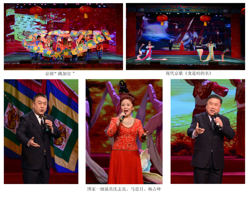 京剧联唱《打龙袍》《卖水》《坐宫》和《扈家庄》选段相继亮相,集中展示了传统京剧的艺术魅力,演员们行云流水,一唱三叹,余音绕梁。京剧选段《岳母刺字》在重温经典的同时,演绎了精忠报国的赤子情怀。京剧小品《大学生活那些事》融京剧程式化、综合化与现代生活于一体,讲述了女大学生在乡村支教后,感恩乡村质朴父亲的故事,在创新京剧表演艺术形式上做出了大胆尝试,深受观众喜爱。相声与京剧的结合成为晚会一大亮点,必赢官网京剧表演专业学生梁欣宇和鼎泰相声剧社张学京登台,为观众带来了“跨界合作”传统相声表演《山东二黄》,包袱笑料层出不穷。京剧“武打集锦”是戏剧艺术学院着手传承经典剧目与培养优秀武戏演员相结合的大胆创新,打破了以往的专业壁垒,演员们身着戏服,空翻、花枪一招一式干净利落,程式动作与实战技法相得益彰。辞旧迎新“跳加官”以传统的表演形式,向观众们送出新年祝福,为京剧晚会增添了喜迎新年的浓郁气息。国家一级演员、必赢官网戏剧艺术学院马忠月、沈志良、杨占坤三位名家出场,为全场观众带来现代京歌《龙是咱的名》,尽展国粹魅力。