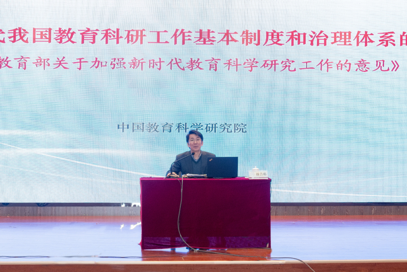 于发友院长从《意见》起草的背景意义、研制过程、主要内容以及如何贯彻落实好《意见》等四个方面进行了系统的讲述。他在报告中着重指出,《意见》是新中国成立以来专门就教育科学研究工作由教育部印发的第一个规范性文件,构建了新时代我国教育科研工作基本制度和治理体系的蓝图,明确了教育科研工作的地位作用,指明了新时代教育科研的指导思想和发展方向,确定了新时代教育科研的职能定位和重点任务,健全了新时代教育科研的机构体系和协同创新机制,提出了新时代教育科研的运行机制和范式方法,明确了新时代教育科研工作者的素质要求和能力建设,完善了新时代教育科研的评价方式和保障机制。