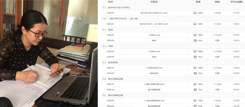 程立英老师认为,教育部、教育厅和学校提供了丰富的线上课程资源,教师在整合资源的同时,重点解决的是“如何激发学生兴趣,调动学生参与度并能保证学生掌握重点和难点”的问题。她表示自己为此也是绞尽脑汁。在学校布置线上教学工作任务后,她一边协调教研室教学工作,一边开展《数字电子技术》等3门课程的建设,经常鏖战到凌晨两三点。