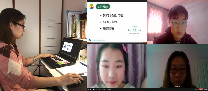 如何上好计算机类的线上课程,让程序教学更加直观,张丽娜老师认为,首先是构建好“空中”教学场景。一是建设“教”的场景。课程采用基于“学堂云慕课+PTA教学实践平台+自建资源”。在开学前,通过建立课程群架起老师和学生之间的空中走廊,采用问卷等形式了解学情,结合课程目标与慕课资源进行教学资源的建设,构建有效实施“教”工具。二是建设学生实施“学”的场景,注册学堂云、加入课程群等线上学习的平台和工具。同时要针对不同学生学习条件的差异,对于不能及时有效实施学习的同学,采用一对一的方式实施“教+学”。
