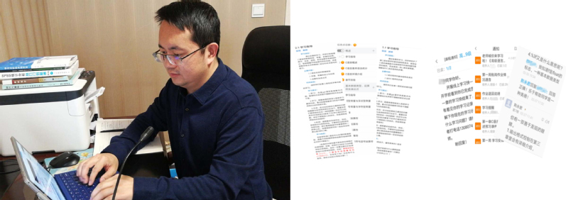 作为分管教学的副院长,荆老师认真学习领会学校本科教学工作的政策和文件,与学院领导班子统筹规划、科学制定学院线上教学工作实施方案,实施骨干引领示范,层层推进的实施策略,建立督导与反馈机制,严把线上教学质量关。他充分发挥自身专业特长和研究领域优势,坚持以“学生为中心”的教育理念,精准分析全院学生学情,对潜在学习障碍的学生提供帮助和心理辅导,确保线上教育教学效果。目前,新闻与传播学院(教育技术学院)开设专业课和公共课共87个教学班,其中82个教学班开展线上教学,占比94.3%,自建课程资源41个教学班,占比50%。多方反馈结果显示,学院大部分课程教学资源建设丰富、教学过程组织有序、教学效果良好。