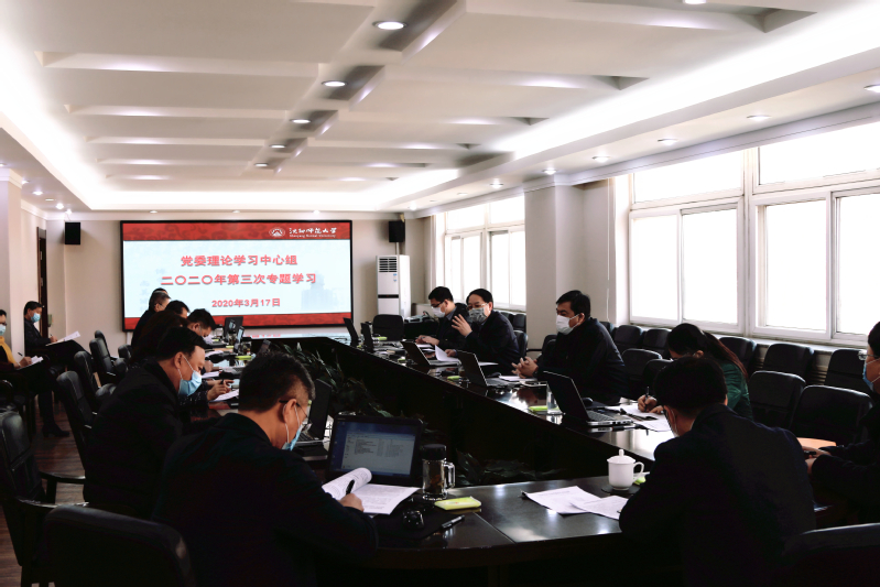 3月17日上午,学校党委理论学习中心组召开专题学习会,深入学习习近平总书记在决战决胜脱贫攻坚座谈会上的重要讲话精神和中共中央办公厅印发的《党委(党组)落实全面从严治党主体责任规定》。党委理论学习中心组成员贾玉明、郝德永、钱英伟、刘娇、韩国海、许金龙、杨杰、刘铸、刘天华、卢全、邵永运出席会议,相关职能部门负责人列席会议。会议由党委书记贾玉明主持。