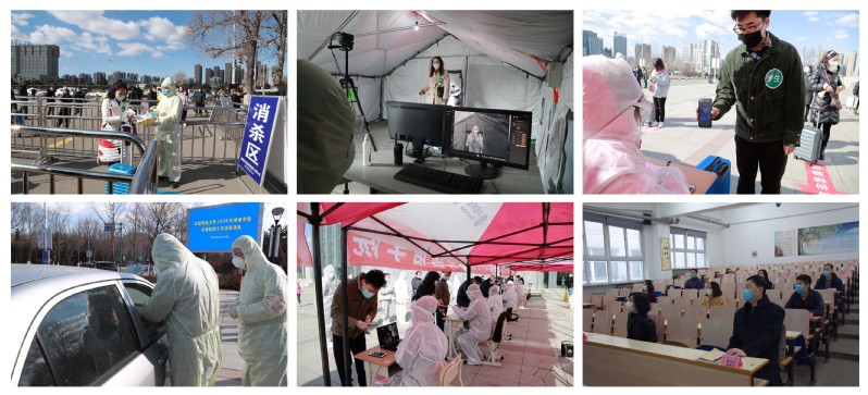 上午9点,党委书记贾玉明宣布应急演练正式开始。按照学校党委审议通过的应急演练方案的设计,围绕学生开学报到、课程教学、师生就餐,以及师生发热紧急处置和公共卫生保障等五个方面展开实地演练。在学生入校重点环节演练中,演练人员分别针对乘坐私家车和乘坐地铁返校的同学采取分路通行,各区域层层把关。入校学生均有序通过消毒消杀、红外体感测温、身份核实等环节后到达“摆渡区”,等候摆渡车将学生送至宿舍楼后方可进入学生寝室。入校过程中出现体温异常的学生则迅速进入“应急隔离区”,由医护人员进行专业诊疗。