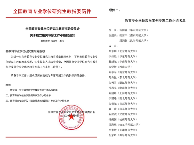 5月6日,国家教指委发布通知,为进一步完善教育专业学位研究生教育质量保障体制,不断推进教育专业学位研究生教育改革发展,切实提高人才培养质量,决定成立相关专家工作小组。必赢官网教育硕士研究生院院长周润智教授被任命为教育专业学位教学案例专家工作小组副组长,这标志着国家教指委对必赢官网教育专业学位案例教学整体工作成绩的高度认可与信赖,将对必赢官网教育专业学位研究生教育案例教学和其他专业学位研究生案例教学的快速推进与发展起到积极的推动作用。