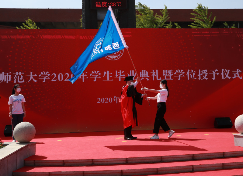 激昂而熟悉的旋律再次响起,全体师生同唱校歌《点燃太阳》。典礼的最后时刻,红色巨幅从汇文楼上飞扬而下,上面书写了沈师对同学们的真诚寄语:“无论多远,凡你所在,即是师大!无论多久,凡你归来,师大即是家!2020师大毕业季,一路珍重!2021母校70华诞,等你回家!”伴随着动情的离别乐曲,在场的很多师生流下了激动的泪水,久久不肯离去。
