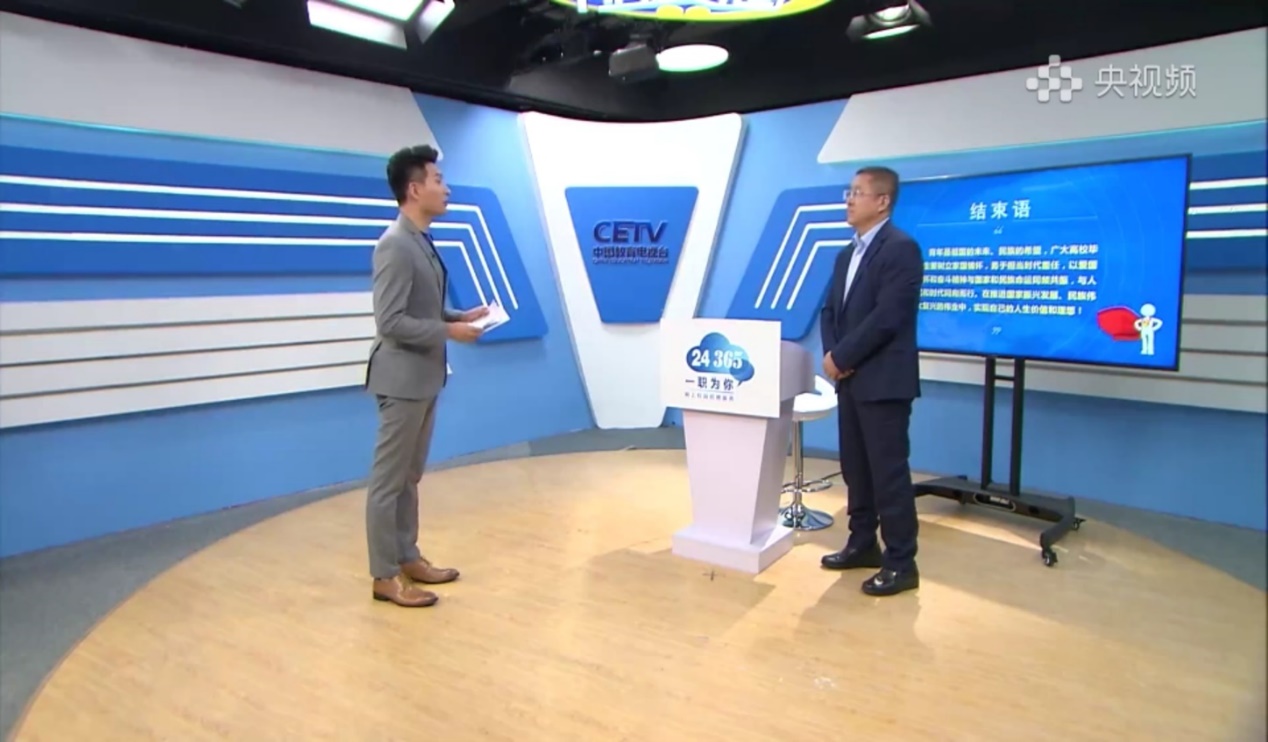在直播过程中,刘铸副校长接受了中国教育电视台的专访。在采访过程中谈到:高校毕业生就业工作既系统又复杂,尤其在2020年疫情防控的特殊历史时期,更应该加强各级政府、社会机构、用人单位和高校之间的深度融合、紧密互动和协同推进作用。深入强化“学校领导包院系,院系领导包专业,教师包学生”的“三包”工作机制,层层压实责任,明确任务分工。精准实施“一院系一策,一专业一策”,重点群体“一人一策”。尤其是二级学院,要提高政治站位,采取超常规的举措,利用一切可利用的有效资源,调动一切可调动的积极因素,汇聚校友资源和力量,提供科研助理岗位,提升学生创新创业能力,全力做好毕业生就业工作。