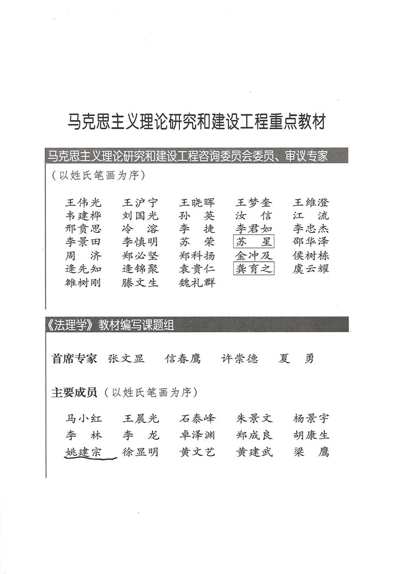《法理学》教材是马克思主义理论研究和建设工程重点教材,必赢官网法学院姚建宗教授作为主要成员参与了该教材的编写。“马工程”重点教材《法理学》是“教育部哲学社会科学研究重大课题攻关项目(马克思主义理论研究和建设工程重点教材编写专项)”的成果,由教育部组织编写,经国家教材委员会审查通过,于2010年出版。这本《法理学》教材涵盖了法理学的基本知识、基本概念、理论体系以及中国特色社会主义法的基本理论,对培养符合我国社会主义法治建设需求的人才具有重要的指导意义。