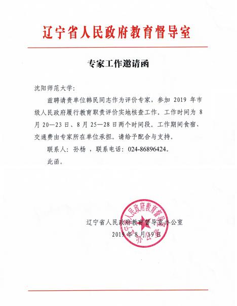 参与督导评估:国家教材委员会专家委员会邀请我院韩民副院长担任学科审查组评审专家;教育部中小学校长和幼儿园园长国家级培训项目管理办公室邀请担任督导专家,对国培项目执行情况进行指导和检查;辽宁省人民政府教育督导室邀请韩民副院长担任“2019年市级人民政府履行教育职责评价实地核查”评价专家。