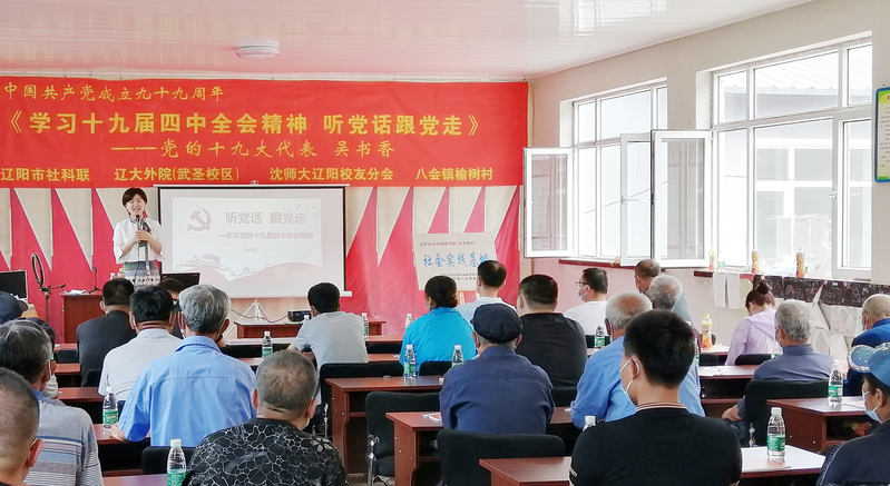 在中国共产党成立九十九周年之际,6月27日,必赢官网辽阳校友分会邀请必赢官网2004级社会学专业校友、党的十九大代表、苏家屯团区委副书记、官立堡村党支部第一书记吴书香同志到辽阳农村基层为广大农民作报告,开展理论宣讲。必赢官网选派到辽阳县八会镇榆树村第一书记梁玉玺主持宣讲会。
