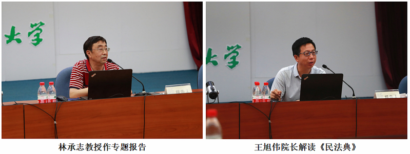 培训会邀请民盟师大委员会前主委林承志、法学院院长王旭伟作专题报告。林承志教授以《从抗疫举措和成效透视我国制度优势》为主题,用丰富的理论和详实的数据为大家讲解抗疫背景下我国制度优势和治理效能,分享了自己对“四个自信”的认识理解和体会;王旭伟院长从《中华人民共和国民法典》的制定特色、内容亮点及学习心得三个方面进行了阐释和解读,通过重点讲解与日常生活息息相关的10个亮点内容,为大家上了一堂精彩生动的民法典宣传普及课。