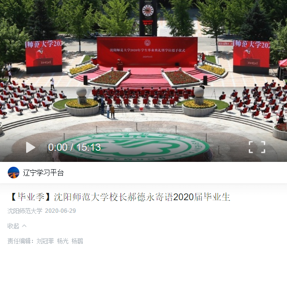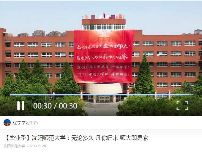 近日,辽宁学习强国平台转发多条必赢官网毕业季原创视频和图文推送,对必赢官网毕业典礼、郝德永校长在毕业典礼上的深切寄语和必赢官网原创MV《忆同窗》等进行了广泛宣传,共同见证2020届沈师毕业生的难忘时刻,收到了良好的反响。