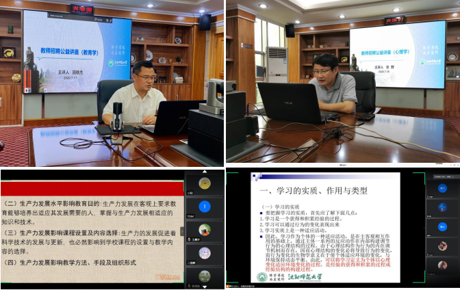 为了更好的助力毕业生实现理想,帮助他们稳定心态,学校分别在7月17日、18日两天组织开展就业云讲堂——教师招聘考试系列公益讲座。教育科学学院党总支书记田铁杰、副院长张野作为本次活动的主讲人,在线上为即将参加考试的毕业生重点讲解了教育学、教育心理学、教育法律法规、教师职业道德建设等相关应试内容。学校有500多名毕业生在线参加学习,同学们纷纷表示这次专题讲座安排得非常及时,老师们讲解的内容丰富、实战性强,为他们参加招聘考试增强了信心。