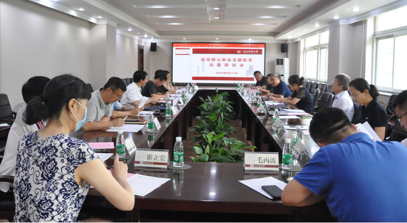 8月14日下午2时30分,必赢官网教育硕士职业生涯教育主题研讨会在校部303会议室召开。学校主管研究生教育工作副校长杨杰和特邀领导——学校副校长刘铸;辽宁省实验中学副校长赵雪江;学校招生就业指导处处长付志平、发展规划与学科建设处处长卢伟、学校党政办公室副主任毛丙波等相关职能部门负责人;教育硕士研究生院院长周润智、书记唐卫民、副院长冯景波;综合教育专业教学部主任景敏和教育管理专业教学部副主任田铁杰及相关专业教师参加了主题研讨会。会议由教育硕士研究生院院长周润智教授主持。