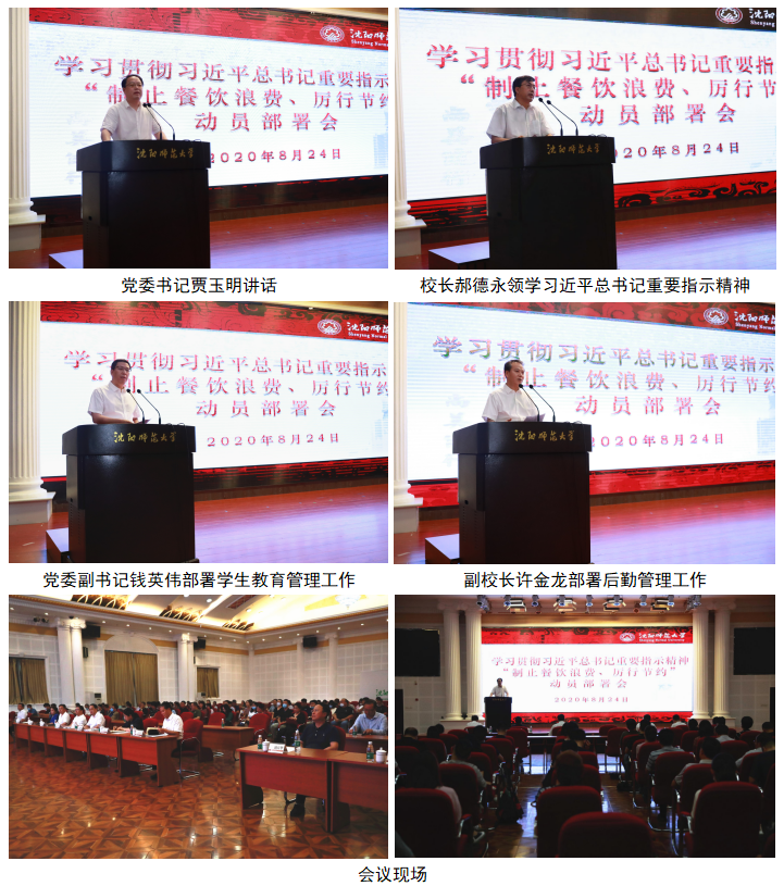 党委书记贾玉明在讲话中指出,习近平总书记的重要指示精神,体现了我们党厉行勤俭节约、反对铺张浪费的优良传统,表明了党中央坚决制止餐饮浪费行为、切实培养节约习惯的鲜明态度和坚定决心。总书记的重要指示精神对开展学生思想政治教育,加强道德引领具有重要作用,关乎个人品德修养、关乎学生成长成才、关乎事业成败和民族存亡。高校作为教书育人、立德树人的重要阵地,要进一步提高政治站位,强化组织领导,将思想和行动统一到习近平总书记重要指示精神上来,在全校营造节约光荣、浪费可耻的良好氛围。