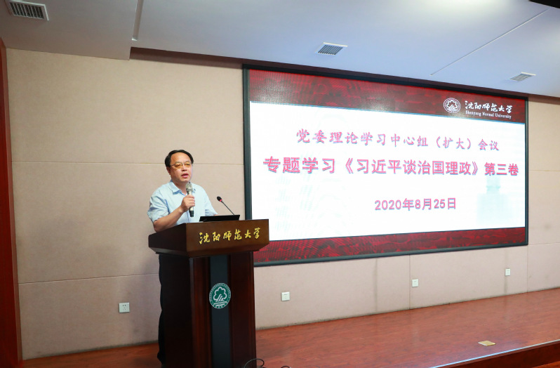 8月25日下午,学校党委理论学习中心组(扩大)在图书馆三楼报告厅召开专题学习会,深入学习《习近平谈治国理政》第三卷。会议邀请中共辽宁省委党校公共管理教研部主任孙庆国教授作专题辅导报告。学校党委理论学习中心组成员、党委委员、纪委委员、党委职能部门负责人、各二级党组织负责人、机关党支部书记60余人出席会议。会议由党委书记贾玉明主持。