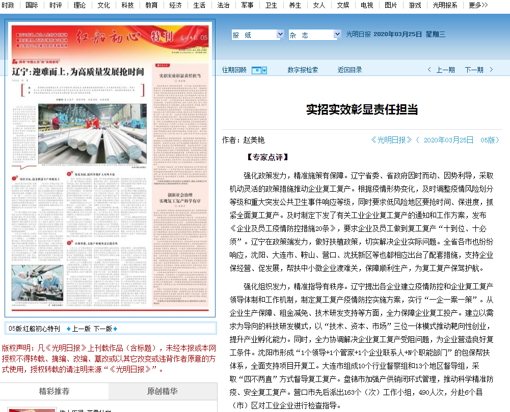 1月17日,中心研究人员马克思主义学院王英伟副教授围绕沈阳市“高质量党建”促进高质量发展的主题发表了理论文章《激活基层治理内生动力》;3月25日,中心研究人员马克思主义学院赵美艳教授围绕辽宁复工复产的主题发表了理论文章《实招实效彰显责任担当》;5月5日,中心研究人员马克思主义学院马文颖博士围绕青年的责任担当问题发表了理论文章《强化社会责任意识教育正当时》;7月8日,中心研究人员音乐学院于君、董蕾围绕生态文明建设问题发表了理论文章《保持加强生态文明建设的战略定力》;8月31日,中心研究人员马克思主义学院赵美艳教授再次发声,围绕东北振兴及沈阳经济社会发展问题发表了理论文章《开创沈阳高质量发展新局面》。