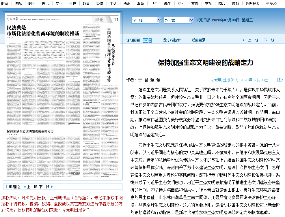 于君、董蕾《保持加强生态文明建设的战略定力》