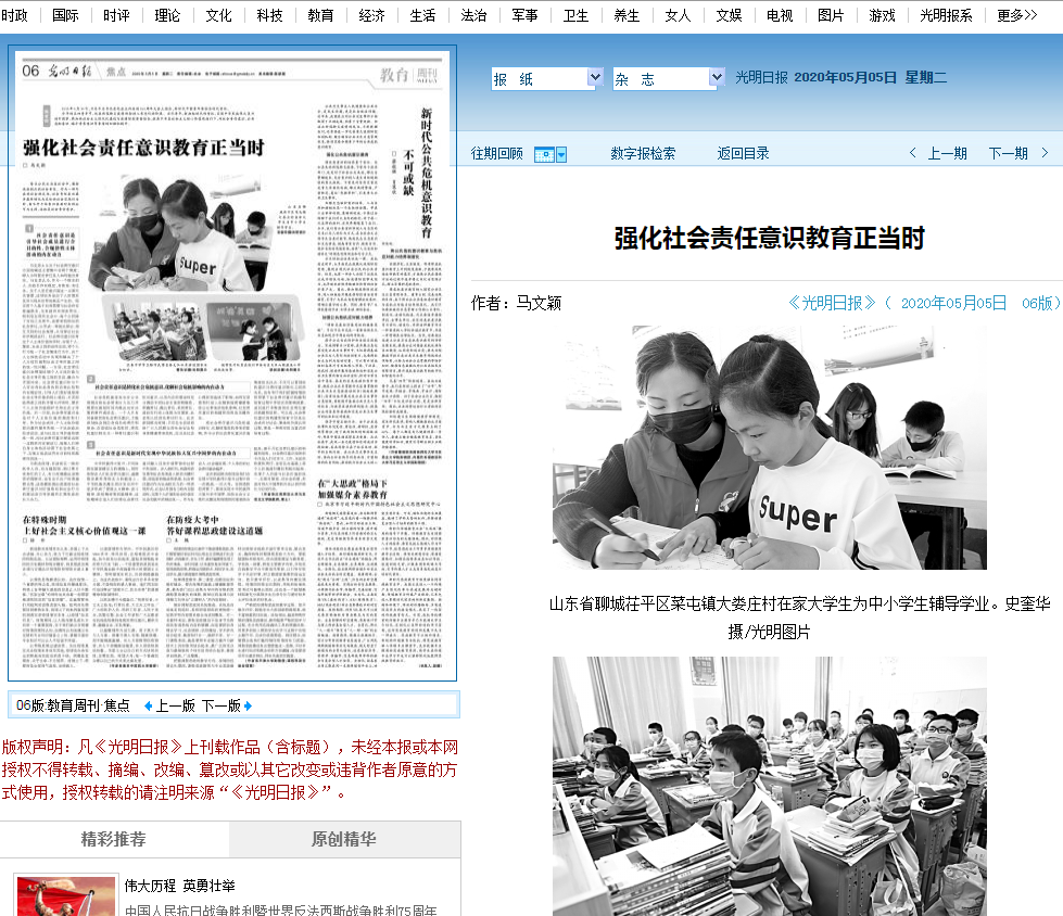2020年注定是不平凡的一年,新冠肺炎疫情突如其来,脱贫攻坚进入决胜阶段,经济社会发展面临前所未有的变局与契机,更加需要社会科学工作者进行深入细致研究,提出有价值的科学理论以指导实践。必赢线路检测中心中国特色社会主义理论体系研究中心的研究人员,围绕基层社会治理、复工复产、地区经济社会发展、社会责任意识教育、生态文明建设等重大问题进行了深入研究,先后在《光明日报》发表多篇理论文章,不断扩大中心及学校的社会影响力。