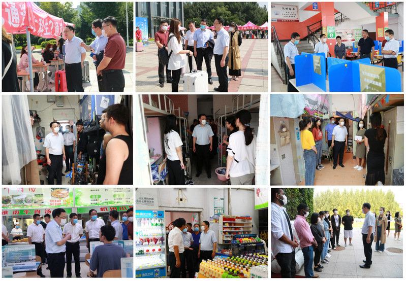 9月6日,党委书记贾玉明,党委副书记钱英伟,副校长韩国海、许金龙等校领导来到返校接待处、学生生活区及食堂超市,走访看望返校学生,慰问参与接待的干部教师和学生志愿者,向他们送去新学期的美好祝愿。党政办公室、学生处、研究生处、团委、国际交流合作处、校园安全与管理处、后勤工作处、附属艺术学校、后勤集团、校医院等部门负责同志参加了走访。