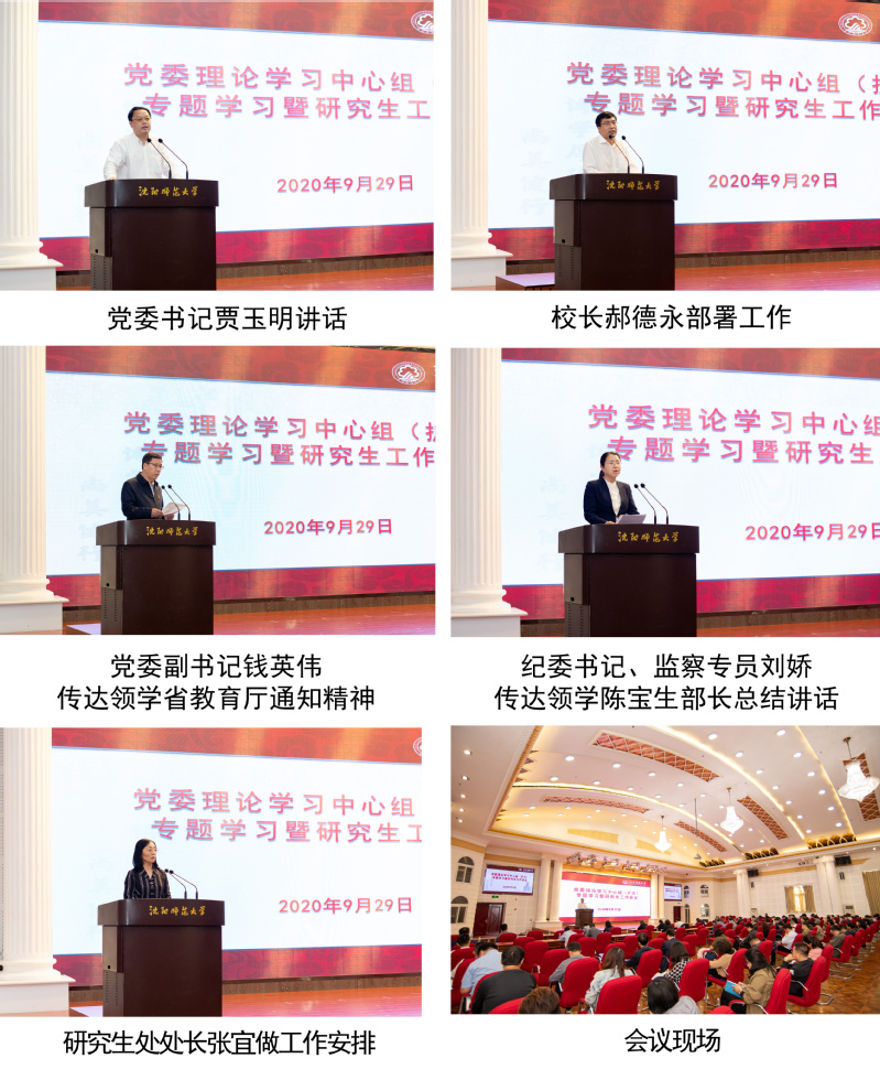 党委书记贾玉明就深入学习贯彻习近平总书记关于研究生教育工作的重要指示精神和全国研究生教育会议精神,深入开展研究生思想政治工作,加强导师队伍建设提出要求。他指出,习近平总书记关于研究生教育工作的重要指示精神和全国研究生教育会议精神,充分体现党和国家对研究生教育的高度重视,为新时代做好研究生教育工作提供根本遵循和行动指南,要在“深刻领会”和“狠抓落实”两个方面下功夫。他指出,一要拓宽眼界,立足全局,准确把握习近平总书记关于研究生教育工作重要指示和全国研究生教育会议历史背景、思想精髓、重大意义和战略部署,提高加强研究生教育工作的责任感和紧迫感。二要提升站位,把深入学习习近平总书记重要指示精神作为当前一项重要的政治任务抓紧抓实,认真组织相关职能部门和研究生培养单位吃透把准,从党和国家事业发展需要出发,坚持“四为”方针,落实立德树人根本任务,努力培养更多德才兼备的高层次人才。三要深刻省思,强化问题意识,反省反思、对标对表,精准查找学校研究生教育工作问题和短板,深入研究破解难题招法,不断加强和改进学校研究生教育工作。围绕抓好落实,他强调,一是校、院管理服务要“跟上”,切实加强顶层设计、做好制度安排,改善管理服务水平。要以学生为本,把握学生动态,关注学生成长,及时解决思想困惑以及学习生活困难。要统筹用好线上线下平台,强化正向宣传,在全校范围营造良好的学术氛围。二是导师教育引导要“盯上”,弘扬高尚师德、规范教育教学行为,研究生导师既要做好经师,也要做好人师,要热心、耐心、真心、诚心地教育引导学生,涵养育人情怀,言传身教,润物无声,坚定为党育人、为国育才的使命担当。三是学生努力创新要“追上”,进一步强化学风建设,坚持高标准、严要求,科学合理安排学习研究任务,循序渐进指定必读书目,引导学生不断深入思考审问辨析,勤于科研训练、创新实践,培养学生刻苦努力的优秀品质和开拓创新的可贵精神。