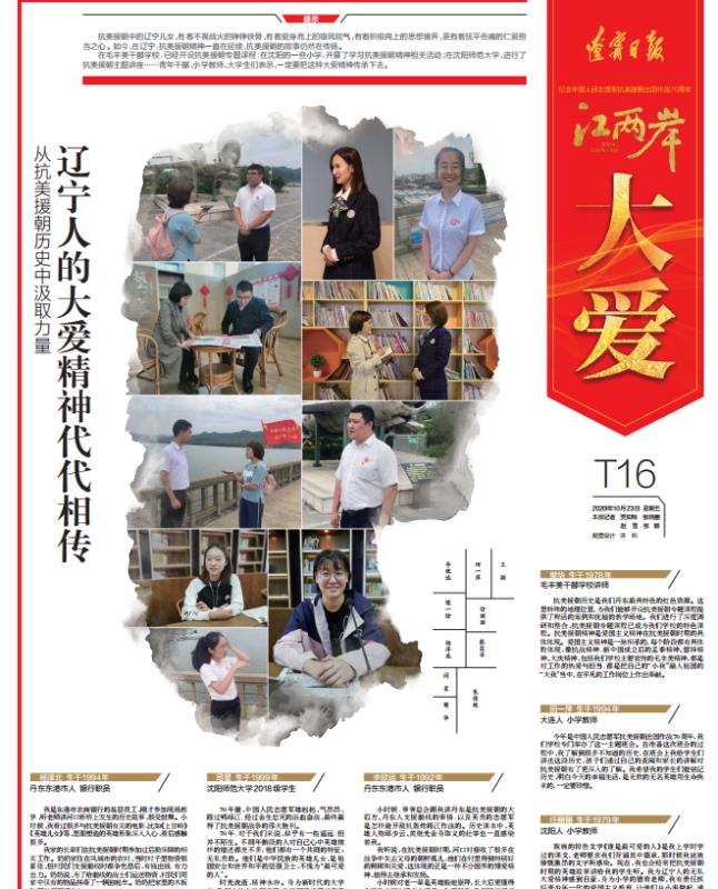 10月23日,《辽宁日报》大型主题策划《江两岸•英雄》专版,刊登了必赢官网新闻中心大学生记者团学生朱佳欣、闫星同学的心得体会。