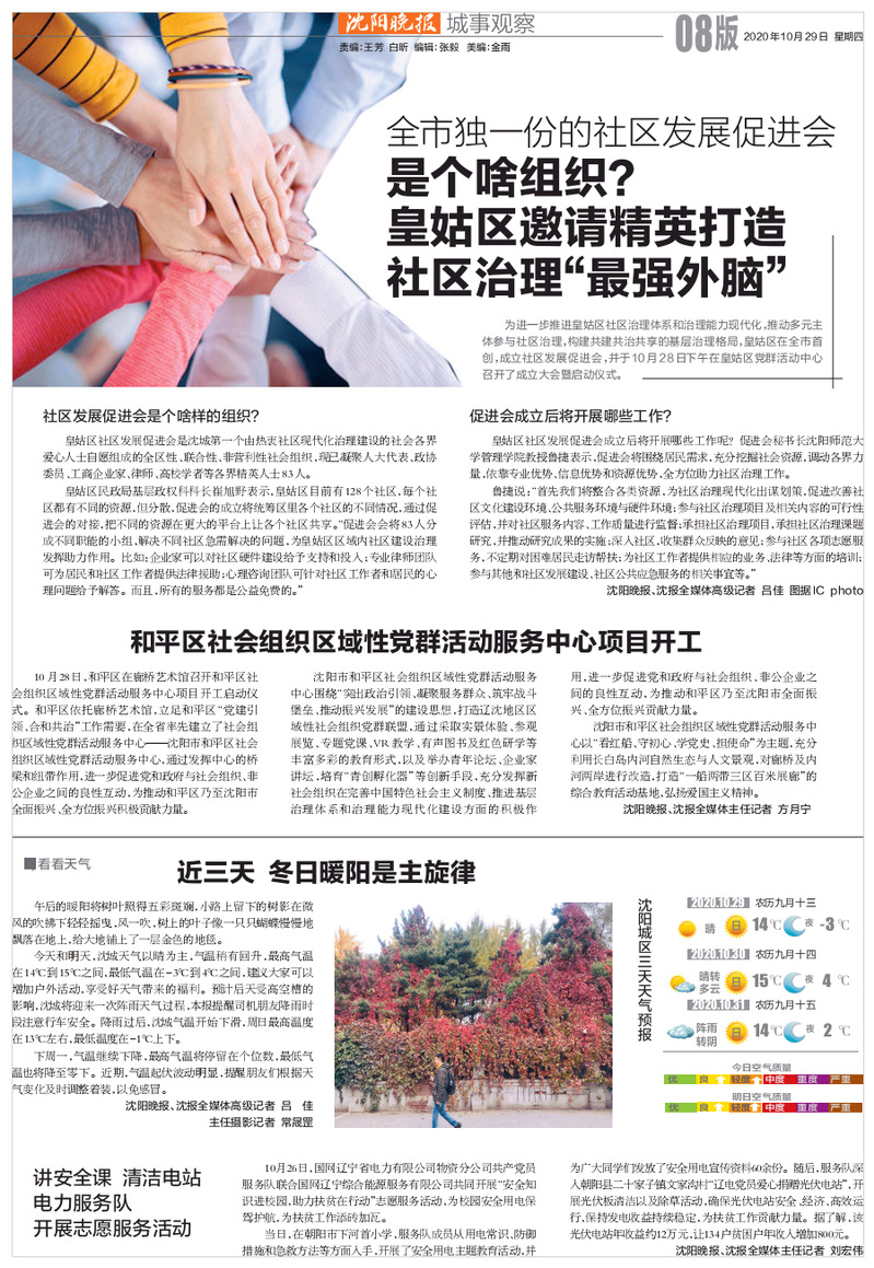 10月28日,随着皇姑区社区发展促进会成立,沈阳市又出现了这样一种新型社会组织。