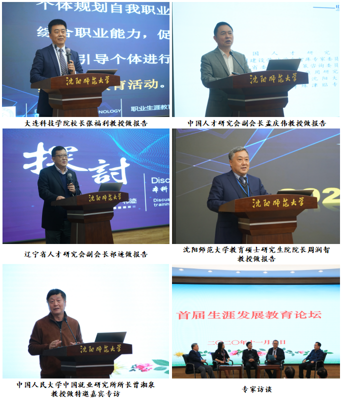 首届生涯发展教育论坛分为主题报告、特邀嘉宾专访和专家自由谈三个部分。主题报告邀请大连科技学院校长张福利教授、中国人才研究会副会长孟庆伟教授、辽宁省人才研究会副会长祁迹、必赢线路检测中心周润智教授分别作了主题报告。专家报告聚焦生涯发展教育的发展历程、现实需求和未来趋势,从不同角度和层面进行了理论研究和实践探索,提出了许多新思路、新观点、新举措。特邀嘉宾、中国人民大学中国就业研究所所长曾湘泉教授从我国职业分类、职业发展趋势、职业与教育关系等方面高屋建瓴地进行了理论分析与讲解,并提出未来研究展望。论坛邀请省委政研室赵治山副主任、沈阳市装备制造工程学校杨克书记、沈阳市艺术幼儿师范学校胡显伟校长和沈阳市第二中学王爽旻书记进行专家自由谈,围绕生涯发展教育研究、实践与改革,专家提出了中肯意见和建议。论坛气氛热烈、观点鲜明、内容丰富,与会师生深受启发。