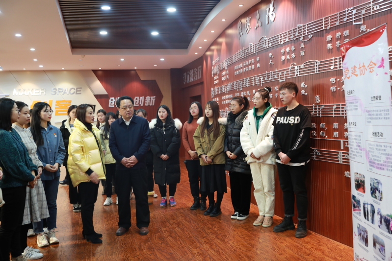 为促进广大青年学生深入学习贯彻党的十九届五中全会精神,充分发挥理论社团和学生骨干的引领示范作用,12月2日下午,党委书记贾玉明与大学生党建协会成员在图书馆创客讲堂就学习贯彻党的十九届五中全会精神进行座谈交流,相关职能部门负责人、党建协会指导教师及骨干成员共同参加。座谈会由党建协会会长、马克思主义学院刘月同学主持。