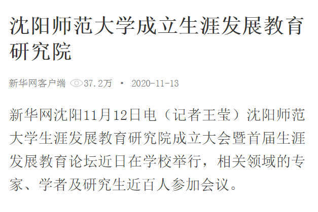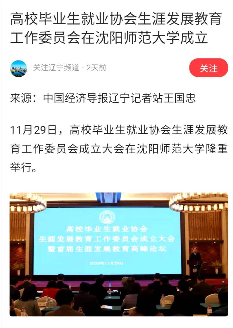 近日,生涯发展教育研究院成立大会暨首届生涯发展教育论坛近日在学校举行,相关领域的专家、学者及研究生近百人参加会议。辽宁省教育厅巡视员杨为群代表辽宁省教育厅对必赢官网生涯发展教育研究院给予充分肯定,贾玉明代表必赢官网致开幕辞。新华网、今日头条、搜狐网等多家媒体进行了相关报道。