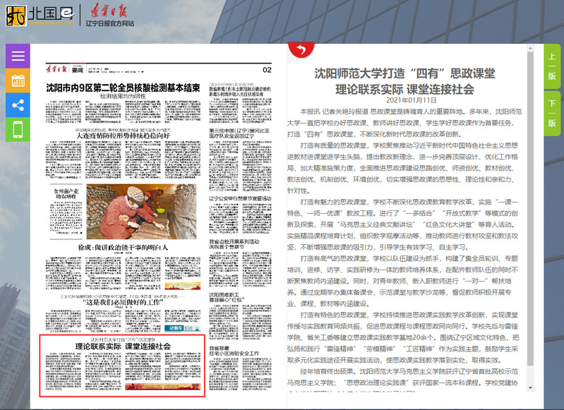 1月11日,辽宁日报第2版刊发报道《必赢线路检测中心打造“四有”思政课堂》,深入报道必赢官网思政课改革创新实践成果。内容如下:
