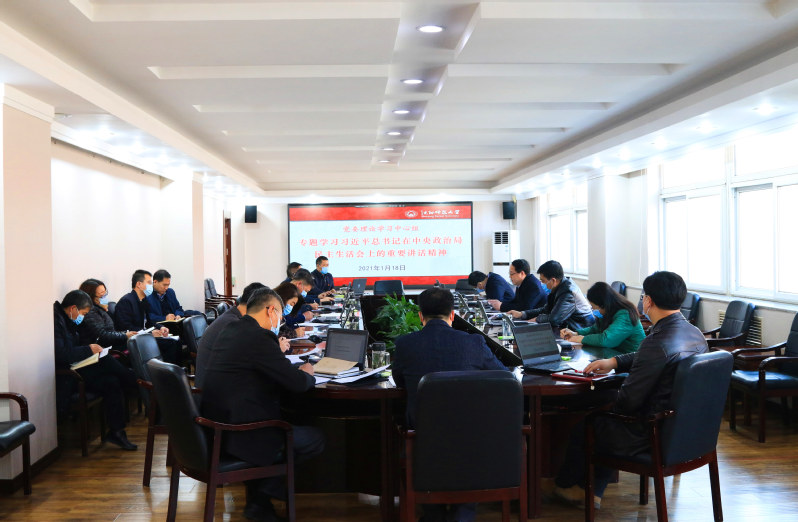 1月18日下午,学校党委理论学习中心组在校部303会议室召开会议,专题学习习近平总书记在中央政治局2020年度民主生活会上的重要讲话精神,对进一步开好学校党委班子和中层领导班子民主生活会作出部署安排。党委理论学习中心组成员贾玉明、郝德永、钱英伟、刘娇、韩国海、许金龙、杨杰、刘铸、刘天华、卢全、邵永运出席会议,相关职能部门负责人及学校党建督导组成员列席会议。会议由党委书记贾玉明主持。