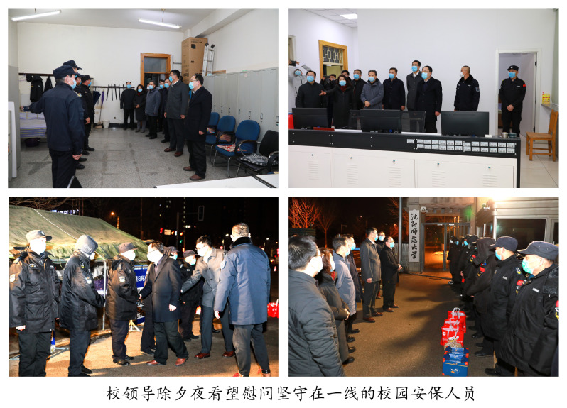 校领导一行先后来到校卫队值班室、校园监控指挥中心和学校西大门,看望慰问坚守在一线的安保人员,为他们送上红包和慰问品,了解春节期间校园安保工作安排,调取学校重点部位的实时监控,与值班人员亲切交流,叮嘱相关部门做好安保人员的生活服务保障。在学校西大门,贾玉明书记对校园安保人员动情地说,过去的一年,你们顶风雨、冒严寒、战酷暑,为疫情防控与校园安全稳定做出了重要贡献,赢得了广大师生的认可,希望大家继续发扬连续作战、无私奉献的精神,为平安沈师建设做出新的贡献,祝愿大家在新的一年身体健康、工作顺利、阖家幸福。