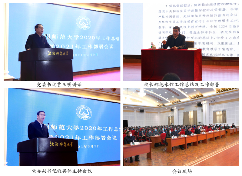 围绕今年学校事业发展任务,郝校长部署了十项重点工作。他指出,2021年是“十四五”开局之年,要按照省委省政府、省委教育工委和省教育厅的工作部署,以加强党建和思想政治工作为统领,以落实立德树人根本任务为核心,以服务辽宁全面振兴、全方位振兴为导向,持续深化综合改革,扎实推进内涵建设。一是要加强党对学校工作的全面领导;二是要加强规划建设与一流学科建设,推进内涵建设上台阶;三是要加强一流本科教育建设,再创本科教育新辉煌;四是要加强研究生工作,深化研究生综合改革创新;五是要加强学术创新能力建设,实现科学研究工作新突破;六是要加强教师教育工作,开创教师教育新局面;七是要加强人才队伍建设,构建人才队伍建设新高地;八是要加强国际交流合作,提升国际化办学水平;九是要加强党风廉政建设,切实改进工作作风;十是要加强服务保障工作,提升管理服务质量和水平。郝校长强调,要以更大的力度、更严的要求和更实的举措,推进学校各项事业高质量发展,推动内涵建设实现新突破,为全面建设优势特色鲜明的示范性师范大学开好局、起好步。