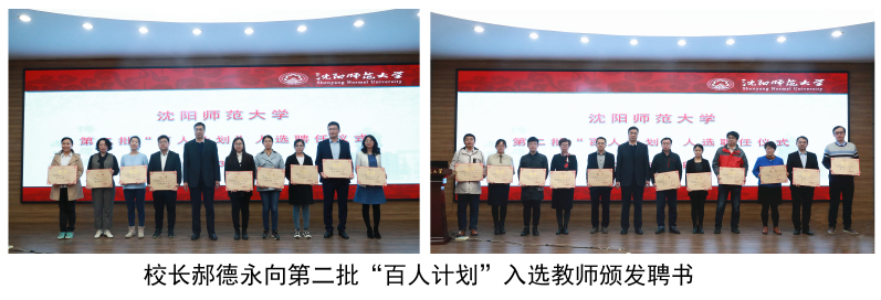 聘任仪式上,校长郝德永为新入选“百人计划”中的领军人才、拔尖人才、青年优秀人才颁发了证书。