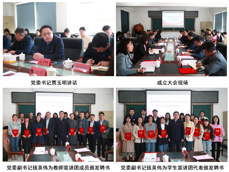 党委常委、宣传部部长邵永运宣读了宣讲团成员名单。党委副书记钱英伟分别为教师宣讲团成员和学生宣讲团代表颁发了聘书。马克思主义学院院长赵美艳从指导思想、宣讲内容、宣讲形式、宣讲题目和宣讲要求等五个方面对宣讲工作进行了部署安排,要求宣讲团成员要精心设计选题、认真开展专题备课,高标准完成党史宣讲任务。宣讲团成员、校党建协会指导教师付瑶从认真梳理百年辉煌党史、正确认识和科学评价党史、从百年党史中汲取智慧与力量三个方面作了表态发言。