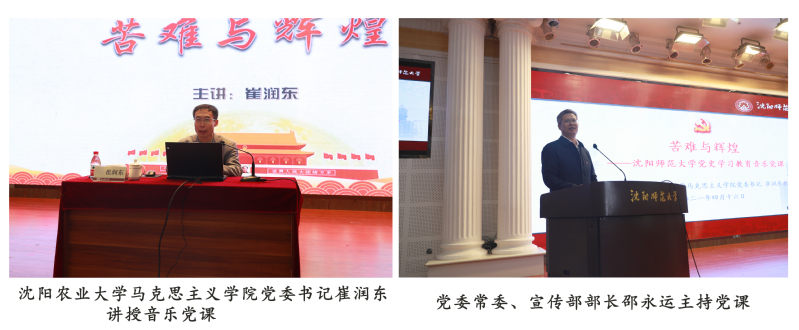 学校开展党史学习教育以来,全校各级党组织通过各种形式认真开展学习,在党员干部和师生中掀起了党史学习新高潮。为进一步创新学习教育形式,4月16日下午1:30,在必赢官网国际商学院二楼报告厅组织了一次别开生面的党史学习,沈阳农业大学马克思主义学院党委书记崔润东教授以《苦难与辉煌》为题,为师生讲授了一堂生动的音乐党课。学校党委副书记钱英伟出席,党委常委、宣传部部长邵永运主持党课。音乐学院、学前与初等教育学院部分领导班子成员、党员教师、学生代表共计300余人参加了党课学习。