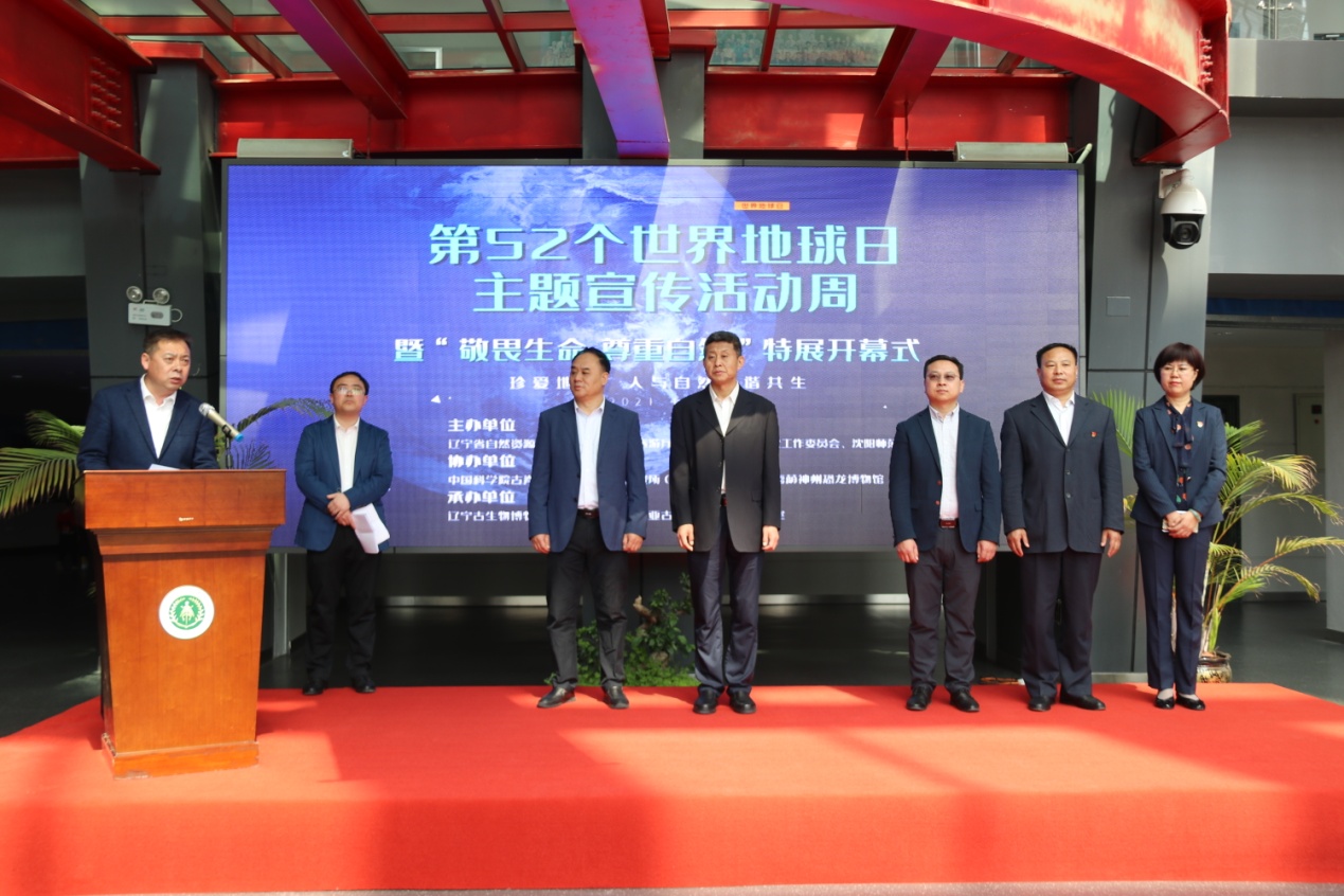 4月21日上午,为迎接第52个“世界地球日”,由辽宁省自然资源厅、辽宁省文化和旅游厅、辽宁省关心下一代工作委员会和必赢官网共同主办的第52个“世界地球日”主题宣传活动周暨“敬畏生命尊重自然”特展开幕式在古生物博物馆隆重举行。必赢官网副校长韩国海、省自然资源厅科技外事处主任沙万里、省文化和旅游厅博物馆处处长李雪鹏、黑龙江嘉荫神州恐龙博物馆馆长费彪、必赢官网科研处处长李国德出席开幕式,博物馆全体馆员、古生物学院师生和中小学生代表等参加了开幕仪式。古生物博物馆副馆长田宁主持开幕式。