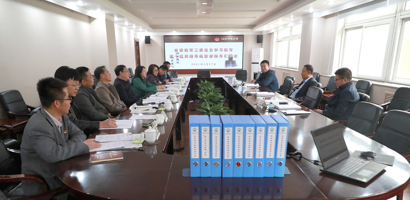 党委书记贾玉明汇报了学校党史学习教育启动以来的进展情况。他指出,学校党委深入学习习近平总书记在党史学习教育动员大会上的重要讲话精神,认真贯彻落实中央、省委部署要求和省委教育工委的工作要求,把开展好党史学习教育作为一项重大政治任务,紧紧围绕“学党史、悟思想、办实事、开新局”的目标要求,聚焦立德树人根本任务,精心设计实施方案,明确学习教育重点任务,成立了党史学习教育领导小组和督查指导组,统筹安排、持续推进党史学习教育十项重点工作,落实落细各项任务举措。贾书记重点介绍了学校党委常委读书班深入学习领会习近平总书记关于党史学习教育重要论述、常委班子带头上讲台为学生讲授党史课、机关干部带头推进“我为师生办实事”实践活动走深走实、坚持“请进来、走出去”创新开展专题党课、加强学校师德师风与学风建设、推动学校内涵发展取得新突破等工作举措与特色做法。