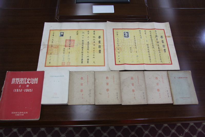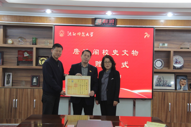捐赠仪式上,詹洪阁先生感慨学校的飞速发展,畅谈校史馆建设的建议和意见,希望为学校教育事业发展、学科建设和学生的培养贡献一点自己的力量。他表示,搜集、抢救和捐赠中国近现代具有重要社会价值的史料,使之回归到需要的地方,是他长久以来的愿望及努力的方向。而教育领域的文献、各大院校的资料,是他重点关注的内容之一。本次捐赠的史料中,有由沈阳师范学院出版的《世界现代史地图》、《九一八前后的中国》和《文艺学概论》等教材及参考资料,有1952年东北教育学院学员毕业证书,有1952年学生使用的《教育学》教材等,史料内容丰富,收藏价值高。希望捐赠的校史史料,有助于学校的人才培养、校史建设等。
