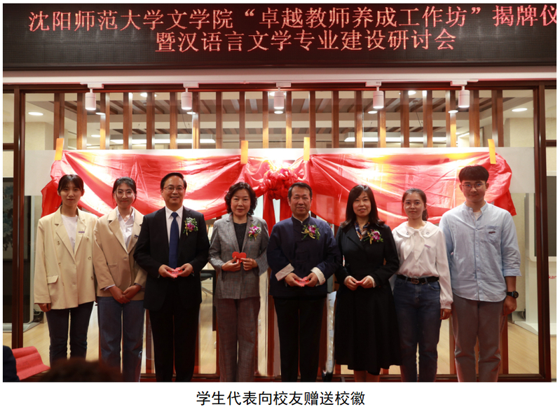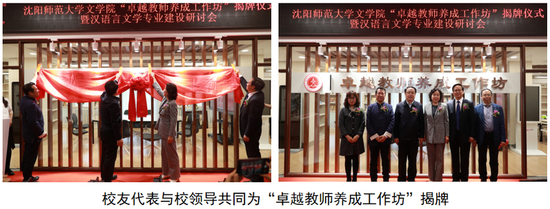 5月10日下午,文学院举行“卓越教师养成工作坊”揭牌仪式暨汉语言文学专业建设研讨会。辽宁省人民政府原参事、辽宁省政协原常委、沈阳市教育局原副局长、文学院77级校友张振忠,全国人大代表、东北育才教育集团总校党委书记兼校长、文学院84级校友高琛,辽宁省实验中学党委书记兼常务副校长、文学院88级校友刘朝忠,东北育才教育集团党办兼校办主任、文学院94级校友陈延军应邀参加。校党委书记贾玉明出席活动并讲话。校党委常委、教务处处长刘天华,党政办公室主任唐立宝,研究生院院长芦伟,文学院班子成员及师生代表50余人参加会议。揭牌仪式由学院党总支书记田红雨主持。