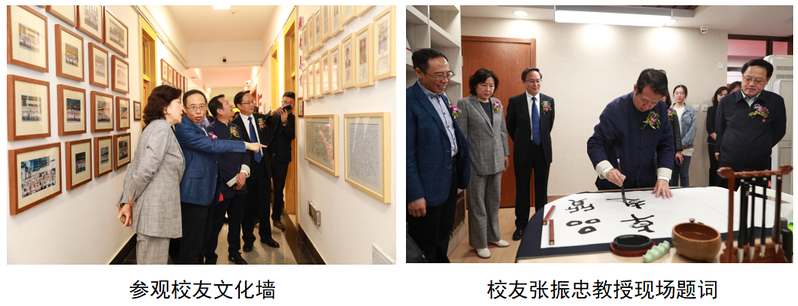 仪式开始前,校友们参观了主题为“桃园”的校友文化墙和文学院70年发展历程图片展。中国书法家协会会员张振忠校友,现场挥毫泼墨书写“品质卓越、境界辉煌”八个雄浑大字,表达了校友心系母校发展,为母校发展成就自豪的激动之情。