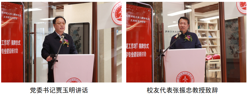 贾玉明书记代表学校讲话。他首先对校友荣归母校参加70周年校庆活动表示诚挚欢迎,对文学院“卓越教师养成工作坊”成立表示祝贺,用“感恩之心、敬佩之情、期盼之意”三个关键词表达了内心感受。他对校友们对母校始终怀有感恩之心,长期以来心系母校发展、支持母校工作,并用卓越成就向母校交上一份满意答卷表示欣喜;对校友们在为学、为人、为政等方面收获的普遍赞誉,成为真正的学者、师者和激情跃动在教育阵线排头的“舞者”表示敬佩;对文学院锚定卓越人才培养目标,创新培养机制,凝练办学特色,依托一流学科、一流专业、一流师资和一流教学科研团队加强内涵建设充满期盼。他希望文学院学子们以几位杰出校友为榜样,刻苦学习,练就本领,磨砺自我,成就卓越。他欢迎校友们常回家看看,与母校加强交流,助力母校发展建设。