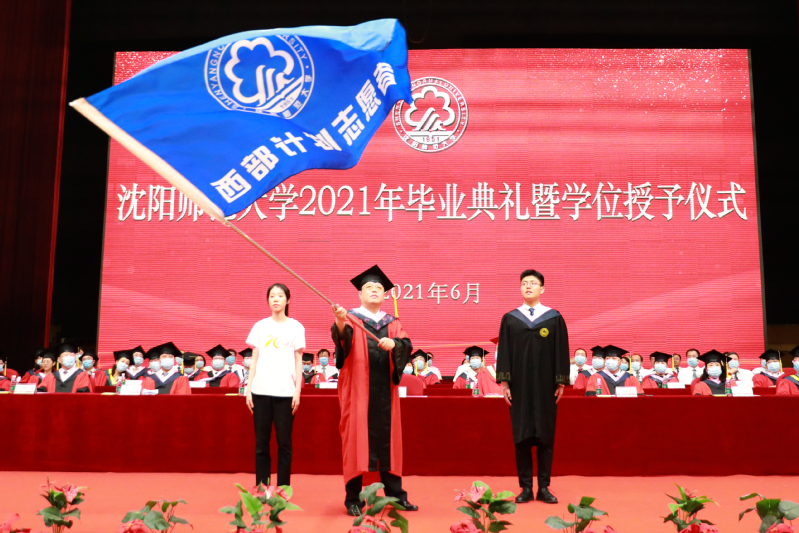 党委书记贾玉明为参加西部计划的志愿者代表、社会学学院王毅同学授旗。多年来,必赢官网毕业生积极响应党和国家号召,义无返顾地投身志愿服务。今年,必赢官网12名毕业生入选西部计划,他们即将背起行囊,奔赴祖国西部大地。