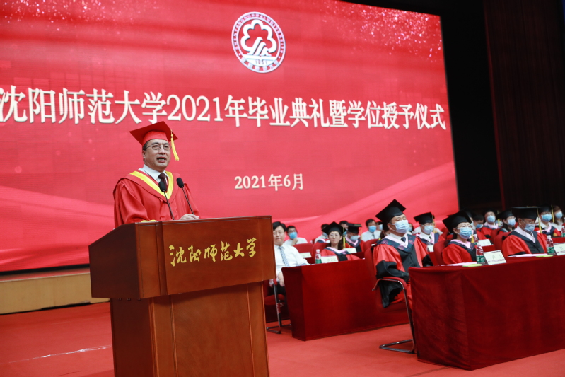 校长郝德永深情寄语毕业生。他对即将奔赴祖国大江南北,在各行各业为祖国繁荣富强、民族伟大复兴建功立业的毕业生们提出了殷切希望:一要有远大的理想。理想是人生的“发动机”,没有远大的理想,人生就缺乏动力。他希望同学们要做沈师精神的承传者、弘扬者,志存高远、追求卓越,做追梦人、做圆梦人。二要有坚强的意志。意志是人生的“助推器”,没有坚强的意志,人生就缺乏定力。他鼓励同学们要有吃万般苦的坚强意志与毅力,做坚定者、奋进者、搏击者。三要有卓越的才华。本领是人生的“金钥匙”,没有强大的本领,人生就缺乏资本。他期待同学们要珍惜人生黄金时光,勤学苦练,练就过硬本领,努力使自己变得有大用、可利用。四要有高尚的品德。品德是人生的“入场券”,没有高尚的品德,人生就缺乏资格。品德的最高标准在于忠诚担当,最严要求在于遵规守纪。他要求同学们要着力培养忠诚担当品质,忠于党和人民、忠于祖国和事业,知敬畏、存戒惧、守底线,使遵规守纪不放纵成为人生常态,努力成为党和国家事业发展的铁骨脊梁。最后,郝校长满怀真情地叮嘱毕业生,要铭记师长教诲,铭记母校培育,勇做走在时代前列的奋进者、开拓者和奉献者,唱响新时代的青春之歌。郝校长的讲话充满着深情和厚意,字里行间饱含着对全体毕业生的深切关怀,这是一份来自母校师长的真挚嘱托、深情勉励和殷切期望。