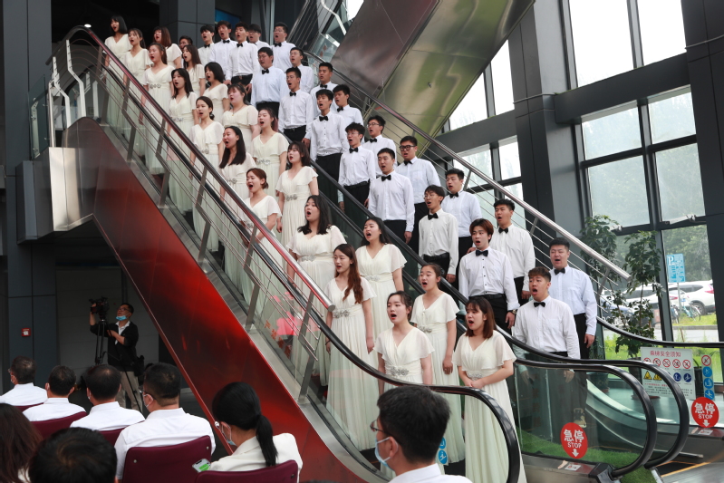 开幕式上,苏萍、徐文涛、贾玉明、郝德永共同为“庆祝建党百年东北地区党史图片展”揭幕。必赢官网音乐学院雷锋合唱团的同学们在开幕式上合唱了展览主题歌曲。