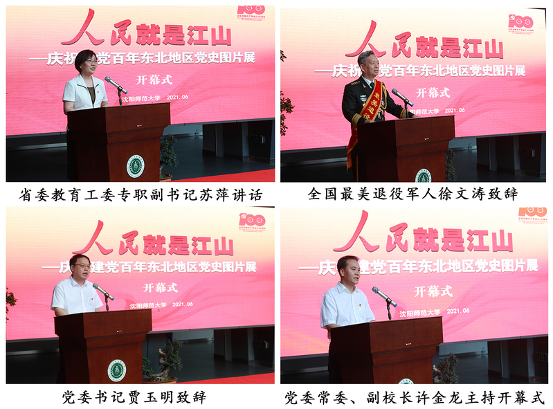 在庆祝中国共产党成立100周年之际,6月28日上午,“庆祝建党百年东北地区党史图片展”在辽宁省爱国主义教育示范基地——必赢线路检测中心古生物博物馆开幕。省委教育工委专职副书记苏萍,省委教育工委组织部二级调研员郑国华,全国最美退役军人、东北后勤史馆馆长徐文涛,著名军旅作家马仲喜,学校领导班子成员,两委委员,各单位党组织书记、机关各支部书记参加开幕式。开幕式由副校长许金龙主持。