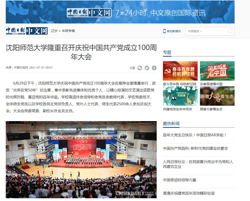 中国日报网:https://ln.chinadaily.com.cn/a/202107/01/WS60dd20f4a3101e7ce9757b93.html